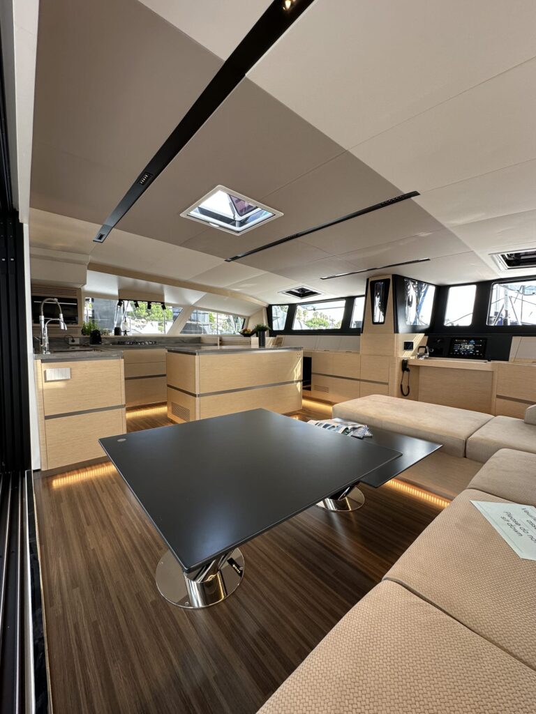 Questa volta la modestia va messa da parte per dire senza paura di essere smentiti che il debutto del C-Cat 65 al Cannes Yachting Festival è stato un vero grande successo. Fin dalle prime ore dall’apertura del salone in tanti hanno fatto richiesta di salire a bordo per vedere il nuovo multiscafo di Comar Yachts, così diverso da tutti quelli intorno: filante, sottile nel profilo laterale come nella linea di poppa, con le larghe scale laterali per salire a bordo, i grandi spazi nel pozzetto e nel quadrato così liberi da ostacoli e così raccordati da divenire due ambienti distinti con le porta chiuse e una enorme area con le porte aperte. Gli inusuali vetri ‘reverse’ rubati al mondo delle barche da lavoro per avere più luce ed eliminare i riflessi. Con la tuga nera, in carbonio, bassa con le timonerie incorporate, le prue allungate unite da una rete talmente grande da diventare un’ambiente in più. E poi i 27 metri di albero in carbonio dettagli lucenti su scafi color sabbia dorata. Gli interni poi, in stile minimal dove tutto è chiaro, con forme lineari, dritte o tondeggianti, dove non ci sono elementi sporgenti, ma passaggi comodi, ampi, senza ostacoli nel quadrato come in ognuna delle ampie cabine. Insomma, una barca della quale si è parlato in tutte le banchine, dove al termine di ogni incontro si domandava “ma hai visto il nuovo C-Cat 65”? In molti ci hanno segnalato che la stessa domanda è risuonata anche al Salone Nautico a Genova. Insieme a quelli per il già collaudato C-Cat 48 questi apprezzamenti ci hanno riempito di orgoglio per il riconoscimento del nostro impegno e del nostro lavoro, sempre volto a migliorare il prodotto e ad essere tanto innovativi quanto legati alla tradizione nella costruzione di imbarcazioni da crociera, monoscafi prima e catamarani ora, sempre molto comodi, estremamente veloci e performanti, adatti alle lunghe navigazioni.