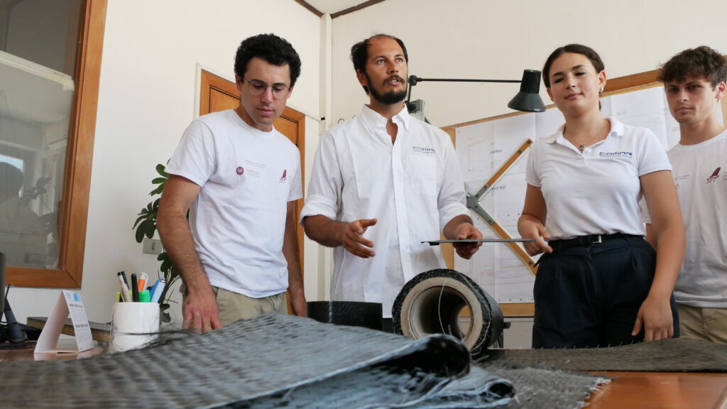 Questa settimana, al Foiling SuMoth Challenge (FSMC) Federico Romeo, il Dipartimento di Ingegneria Meccanica e Aerospaziale dell’Università La Sapienza di Roma, presenta la prima fase di un progetto ambizioso: costruire e far navigare l’International Moth (IMCA) foiling più sostenibile ed efficiente di sempre. Un’iniziativa che coinvolge direttamente Comar Yachts, impegnata a supportare il team universitario non solo mettendo a disposizione il proprio know-how, ma anche fornendo materiali di risulta recuperati dalla produzione dei suoi catamarani, poco meno di 20 metri, decisamente più grandi del piccolo Moth da 3,35 metri che gli studenti stanno realizzando. “Nel cantiere di Fiumicino abbiamo trovato materiali estremamente interessanti per il nostro progetto” dice Romeo, team leader del gruppo di lavoro “Le lastre in composito, già pronte e semplicemente da modellare, provengono per lo più dai ritagli delle paratie o dalla lavorazione degli oblò. Elementi piccoli, se paragonati a un catamarano di 65 piedi, ma perfetti e preziosi per il nostro Moth.” La stessa filosofia è stata applicata anche alla resina: quella in eccesso rispetto alla costruzione delle imbarcazioni è stata recuperata e messa a disposizione del team, in quantità sufficiente a realizzare molte, se non tutte , le componenti del prototipo. Lo stesso vale per il carbonio, nei suoi ritagli unidirezionali e bidirezionali, utilizzato come rinforzo strutturale nei limiti imposti dal regolamento, che non consente di impiegare più di due chilogrammi di questo materiale”. Questa collaborazione con il Foiling Sailing Team rappresenta un esempio concreto di economia circolare applicata alla nautica, dove tecnologia, innovazione e sostenibilità si incontrano per dare nuova vita a ciò che altrimenti andrebbe scartato.